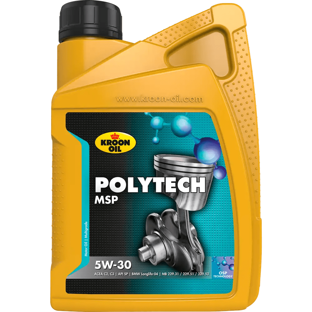 PolyTech MSP 5W-30 suits petrol and diesel engines in cars and vans. By using special ‘OSP’ additives, PolyTech MSP 5W-30 is ideally suited for use in vehicles exposed to extreme conditions. This may include frequently crawling through heavy traffic, ‘sporty’ driving or regular cold starts.
